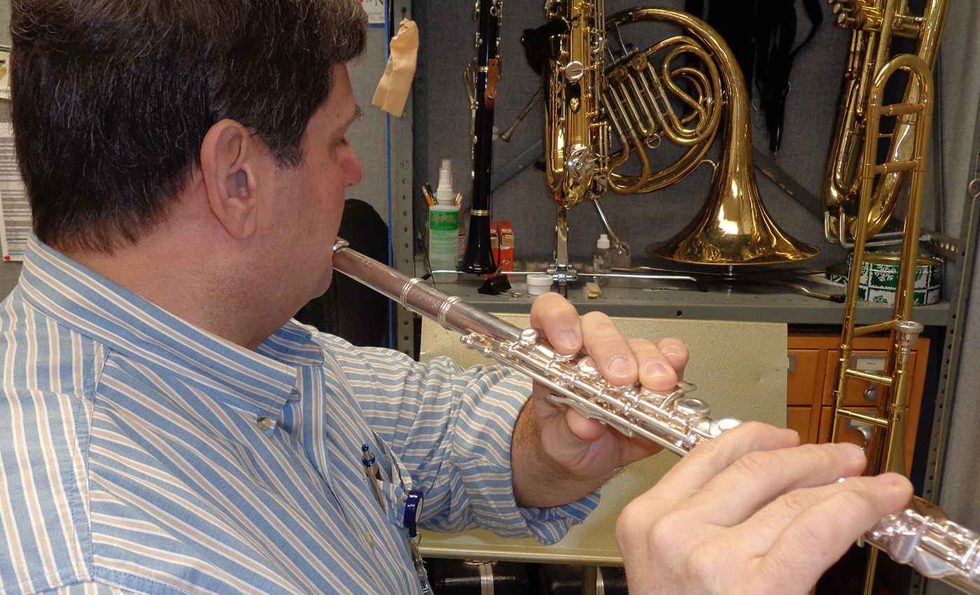 There are many different approaches to beginning flute embouchure. We’ve been using a method called Flute 101 and it offers a great start, suggesting students use only the headjoint for the first few pages. They’re instructed to insert their index finger into the open end to stop or create pitches. This produces an effective starting sound without boring the student to pieces.