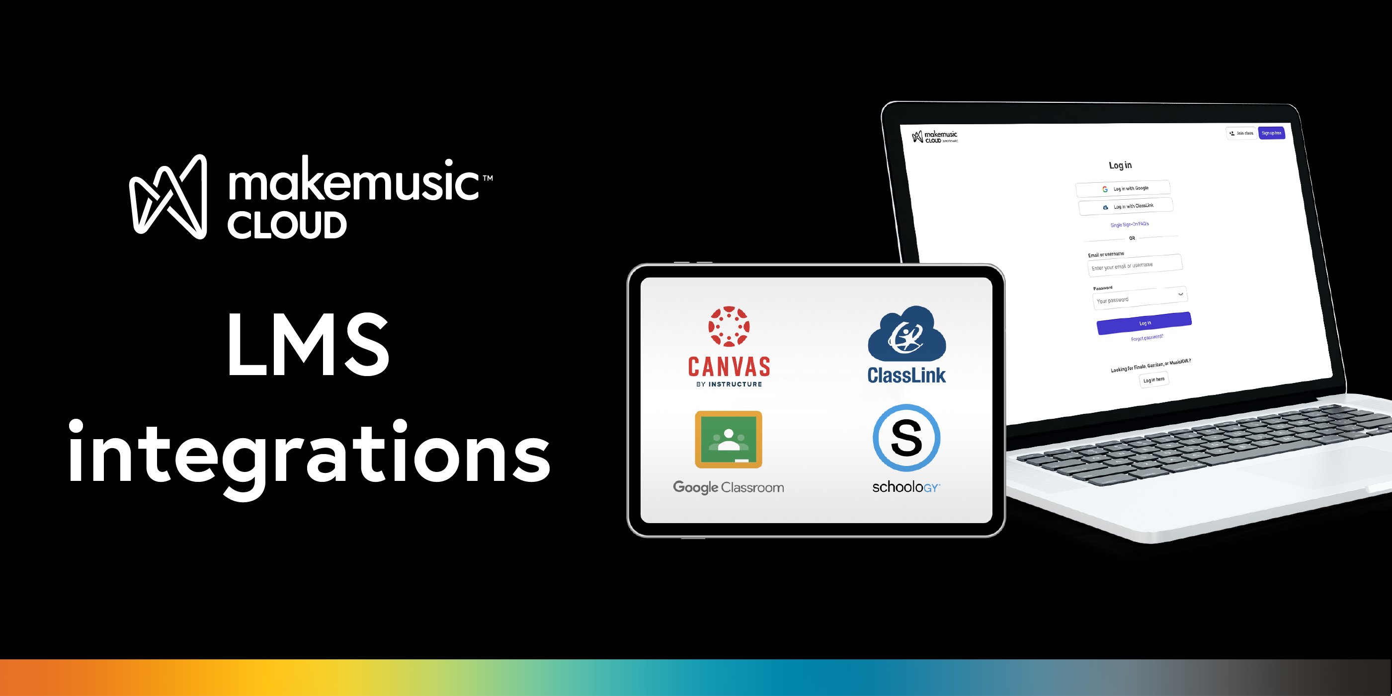 MakeMusic Cloud offers several helpful Single Sign-On integrations—we know that keeping things simple for students supports them in accessing what they need to achieve!