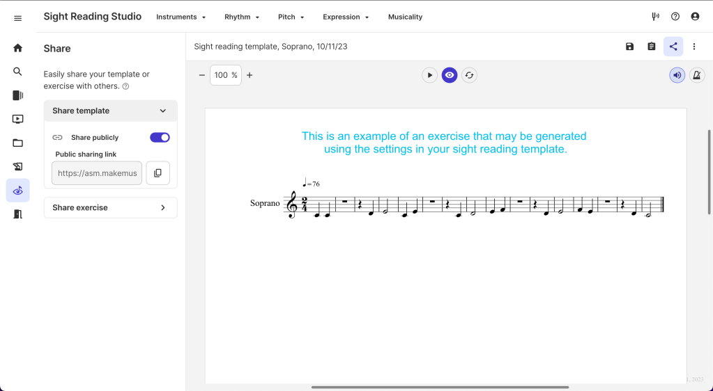 When you share your music, you will be able to send either a template or an exercise (see tip #2 for more information on the difference) to anyone via a shareable public link.