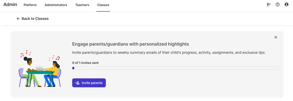 Alternately, teachers can visit their Admin Classroom page (requires the user to be logged in) and select the new Invite parents icon next to the class of their choosing to further streamline the process.