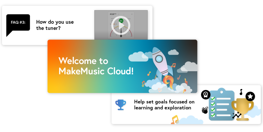 Supporting adults who enroll to receive their child’s Weekly Highlights Email will receive a few helpful messages about encouraging their child musically, tips on how to assist their child with MakeMusic Cloud, and will be reminded of how important their presence is in their child’s musical journey. Additionally, each week they will receive a personalized Highlights Email to give them insights into the music their child is playing, how much they are practicing, what assignments are upcoming, and more!